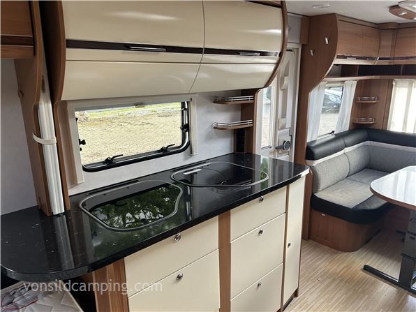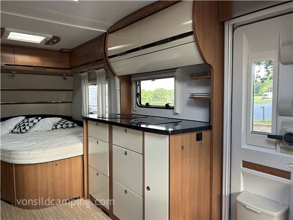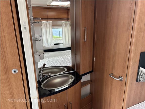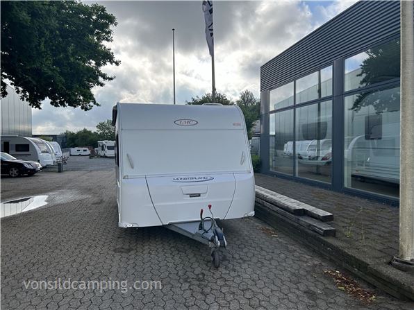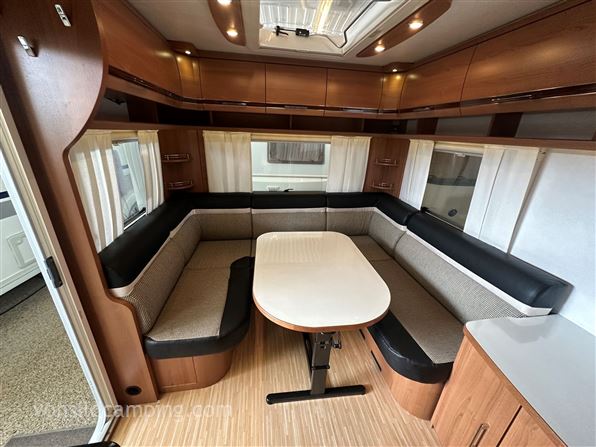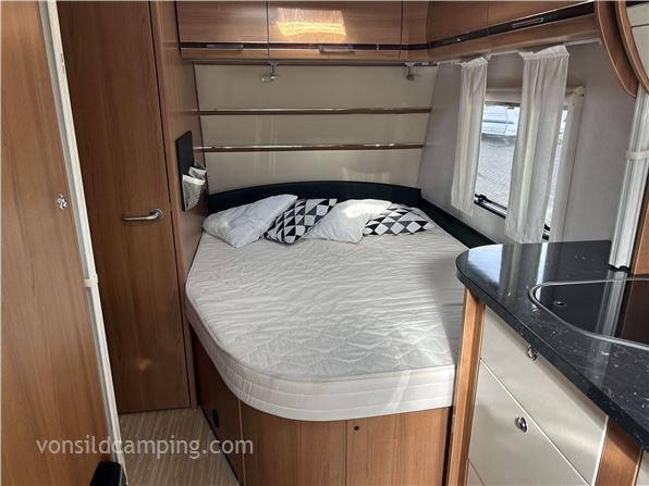 Pæn og velholdt vogn med populær indretning. Rundsiddegruppe i bagenden, køkken samt garderobeskab i midten og i front franskseng og toilet. Mange skabe gør opbevaring til en leg. 145 L. køleskab med fryser, el-gulvvarme, vandmåler, fuld aut. Krönig mover. Stor serviceluge. PRISEN ER INKL. LEV. OMK. OG NR.PLADE