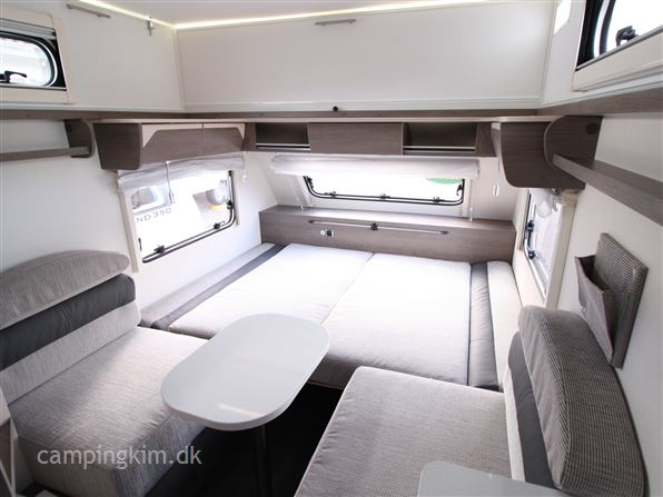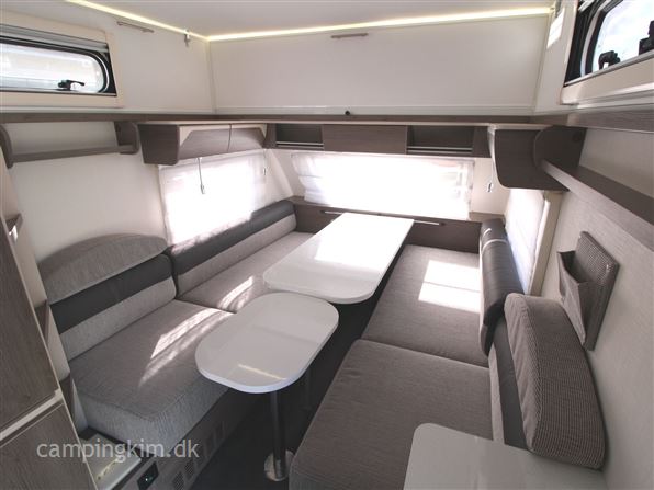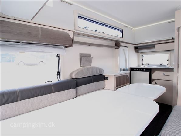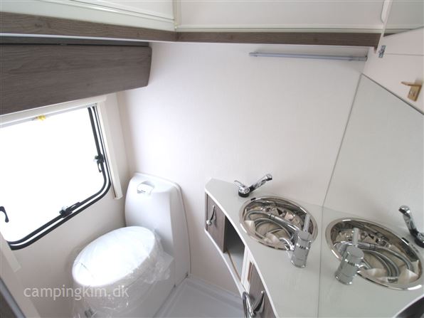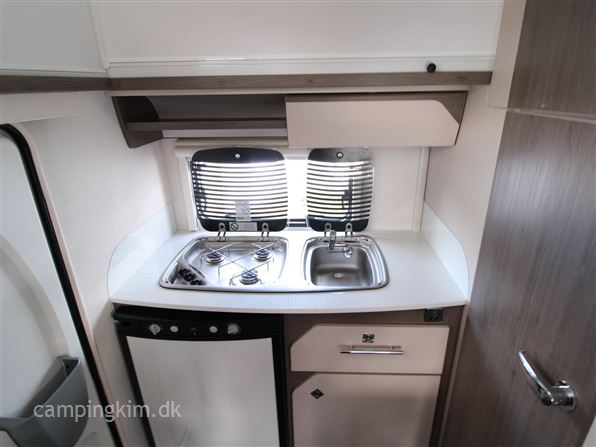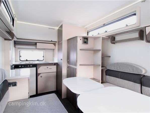 SE VIDEO AF VOGNEN PÅ VORES HJEMMESIDE, GFK(glasfiber) tag, sider, bund,front og bagende, XPS isolering, køkken med 3 kogeblus, vask og køleskab med fryser, vandvarmer, fast vandtank, kassette gardiner med mørklægning og insektnetsdør, Truma Vario heat varme, TV bord, USB. udtag, toiletrum med toilet, vask og håndbruser, alu. fælge, stabilisator træk, serviceluger m.m.