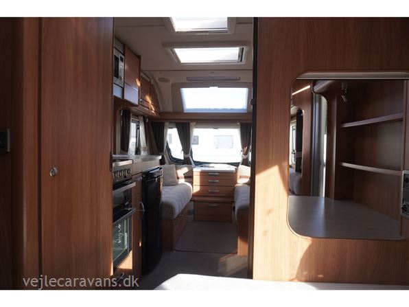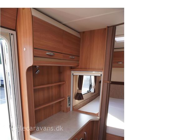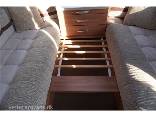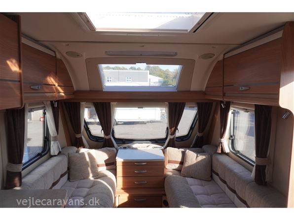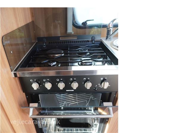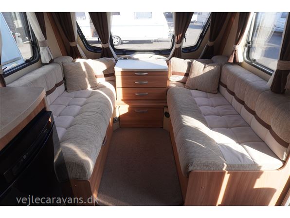 En campingvogn med fransk seng i højre side bag. Toilet i venstre side med bruser og håndvask uden for toilettet. Endesiddegruppe i forenden af campingvognen med enten et lille klapbord eller det almindelig bord. Køkken i venstre side af vognen med komfur med 4 gasblus og 2 ovne, micro ovn, samt et køleskab på 113 ltr. Der er monteret mover på vognen. Der medfølger et Isabella commodore north med carbonx stænger. Prisen er inkl. leveringsomkostninger og nr. plade.