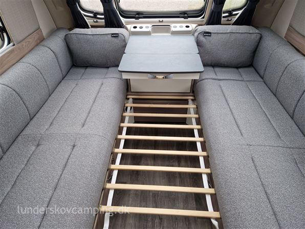 En af de mest solgte indretninger fra Sprite gennem årene. Med 10 års tæthedssikring. Super godt isoleret, karosseri uden trærammer i Smart ++ system .Endekøkken + toiletrum i bag, lange sæder (enkeltsenge) med springindlæg og lamelbund i forenden. Prisen er incl. leveringsomkostninger og nummerplade. Kontrolleret vægt 978 kg.