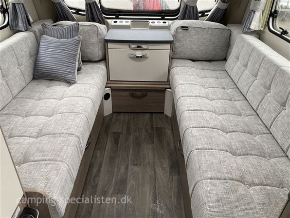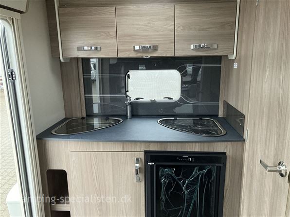 Sprite Mondial 370 SE er udstyret med flere USB-stik under overskabene, så du nemt kan oplade dine enheder. Køkkenet er opgraderet med et nyt køleskab fra Dometic-10 serien og en redesignet køkkenbagvæg med moderne "Downlighter"-belysning, der skaber en behagelig atmosfære under madlavningen.