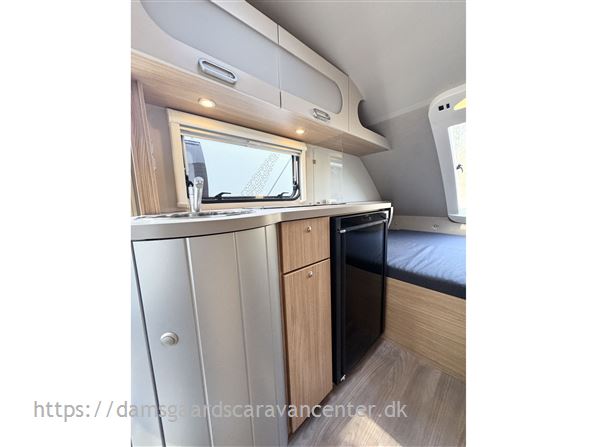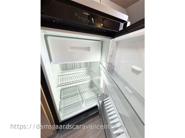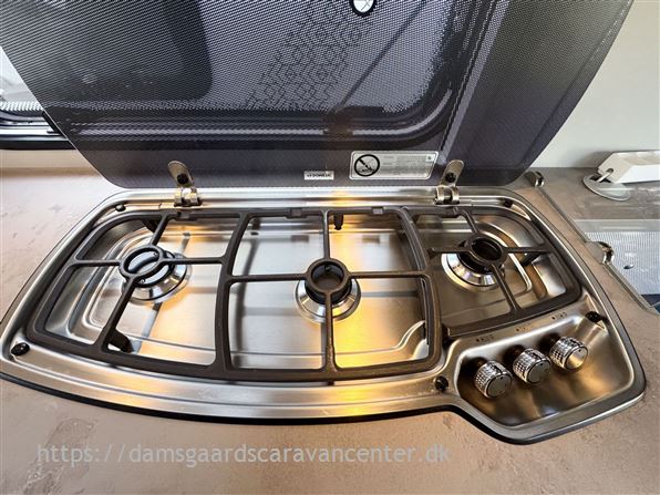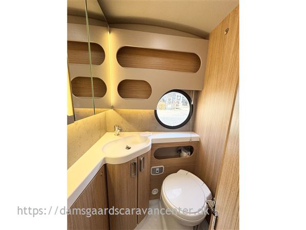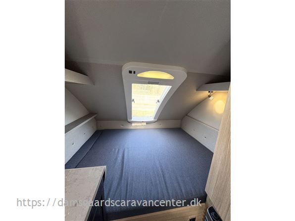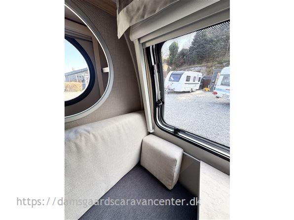 Vognen har manuel Truma SX mover, 12 V. pakke samt automatisk åbning af panoramavindue.