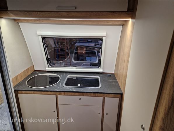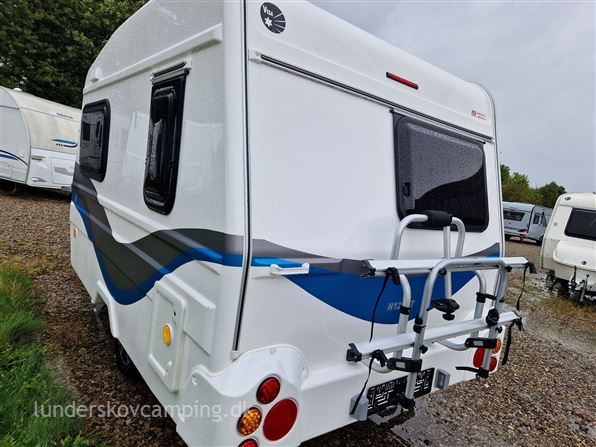 Populær VEGA letvægts-campingvogn med toiletrum i nyt design. Udstyr: Rollos i vinduerne, stabilisator, forhøjet totalvægt til 1000 kg, cykelholder, myggenetsdør, støddæmpere i undervogn (Tempo 100). Med kompressorkøleskab. Nyt udvendigt look . Prisen er incl. alt dette udstyr, leveringsomkostninger og nummerplade.