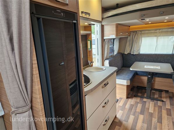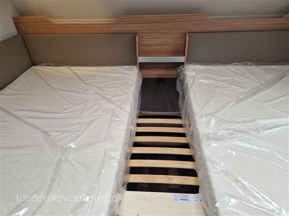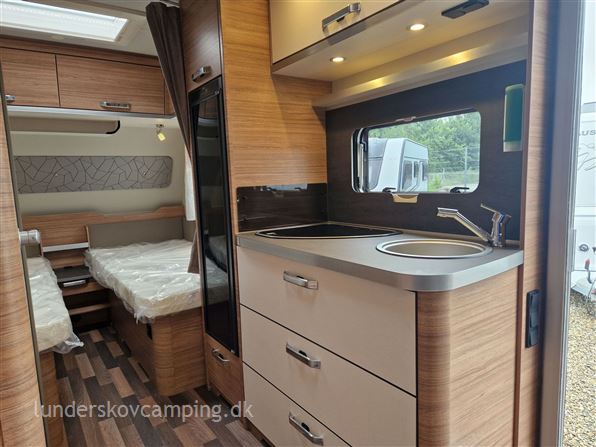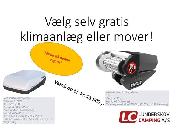 Nu inkl. Fuldautomatisk mover eller klimaanlæg uden beregning! Kampagnemodel med fantastisk indretning: Enkeltsenge med udtræk imellem + hæveseng over den store rundsiddegruppe. Med skabe i stedet for hylder i forenden i siden. Ekstra serviceluge i venstre side forrest. Hyndestof: Dusk. Prisen er incl. leveringsomkostninger og nummerplade. Kontrolleret vægt: 1230,50 kg.
