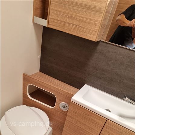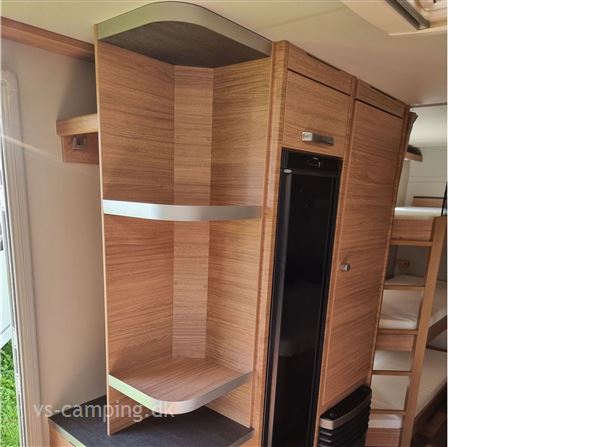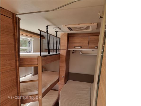 Vognen er indrettet med rundsiddegruppe, køkken og toilet midt i vognen og i bagenden med fransk seng og køjer til 3.
