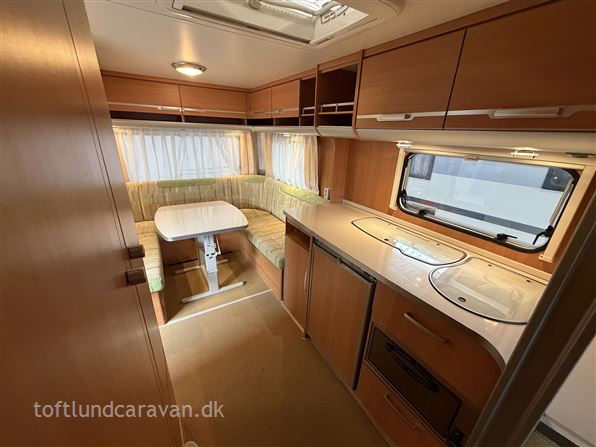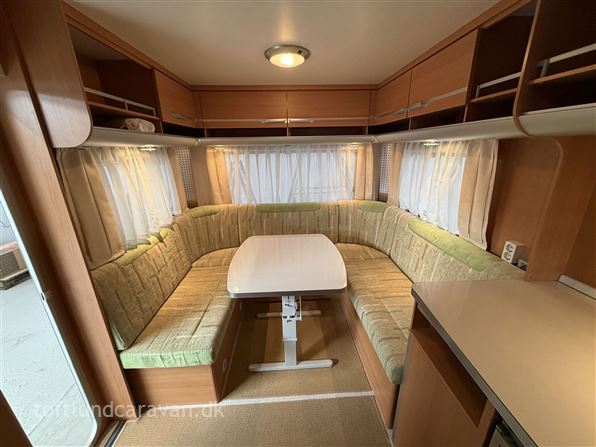 Virkelig velholdt 1 ejers ikke ryger vogn med masser af plads. Vognen er rigtig godt udstyret med bla. Fuldaut. Enduro mover, gasbageovn, varmt vand, Truma ultra heat, så varmen både kan virke på gas og el, kantsyet tæpper mv. Sælges inkl. fortelt. Populært indrettet med stor rundsiddegruppe bagerst, køkken med masser af skabe samt god gulvplads i midten af vognen. Forrest findes dejlig dobbeltseng, toilet og håndvask arrangement. Hvem kommer først til dette fine tilbud. Husk prisen er inkl. syn nr. plade gas og fugttest samt klargøring på eget værksted. Vi tilbyder fordelagtig finansiering. Vi kan tilbyde at levere denne vogn direkte ud på pladsen. Velkommen til Toftlund Caravan.