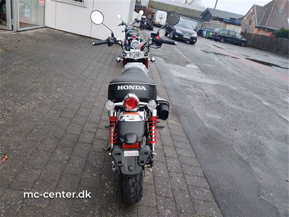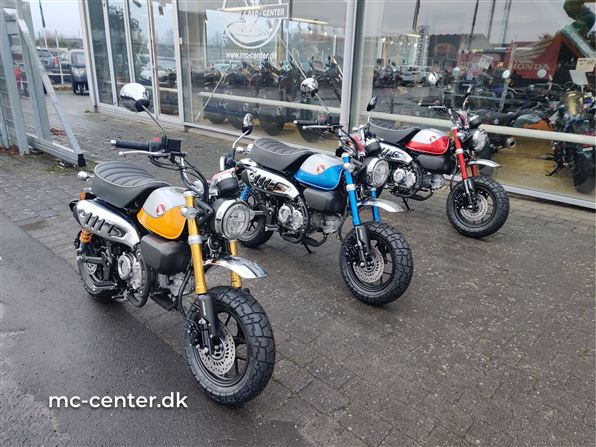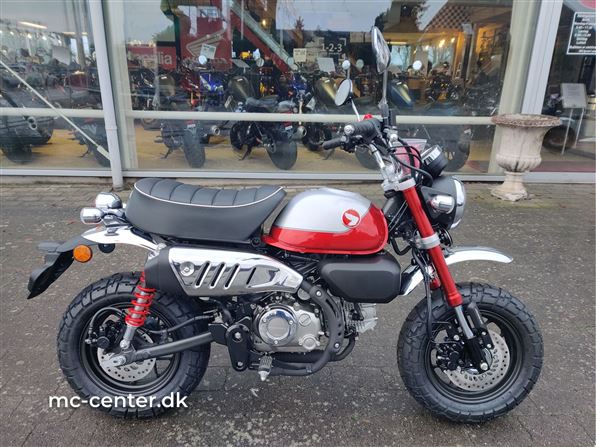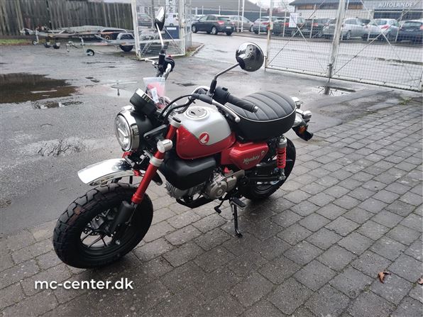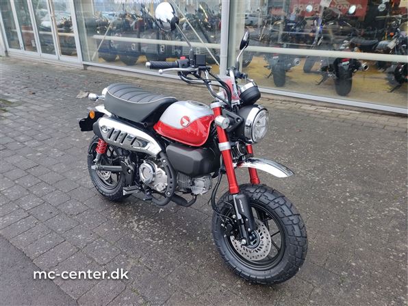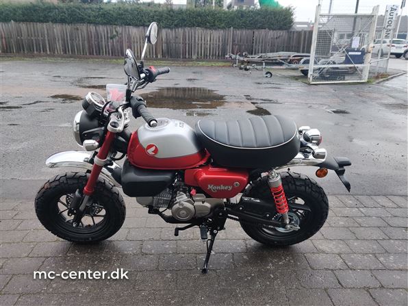Monkey har sin helt egen stil. Og en karakter som ingen anden. Et ikon fra 70’erne, nytænkt til nuet, komplet med funky high-rise-styr. Men det Monkey egentlig handler om, er den rene og skære køreglæde. Den er bygget til at få smilet frem på dine læber. Og det synes vi slet ikke, der er noget i vejen med. Dens luftkølede horisontale 125 ccm SOHCmotor med indsprøjtning er tunet, så den leverer en fantastisk by-orienteret kraft, og når op på 9,3 hk ved 7.000 o/m og 11 Nm ved 5.250 o/m. Gearkassen med 4 gear betjenes med kobling, præcis som på en stor motorcykel. Det voluminøse og behagelige uretansæde sidder kun 775 mm fra jorden, og den køreklare vægt på 107 kg er nem at styre. Up Side Down-forgaffel (USD) er kombineret med dobbelte støddæmpere bagtil og kraftige, 12-tommer dæk med blokmønster. ABS’en styres af en Inertial Measurement Unit (IMU), så bagenden af motorcyklen ikke løftes ved kraftige opbremsninger. En enkelt 220 mm forskive og 190 mm bagtil står for bremsekraften. Meget mere end bare et stykke legetøj. Leveres med 3 års fabriksgaranti.