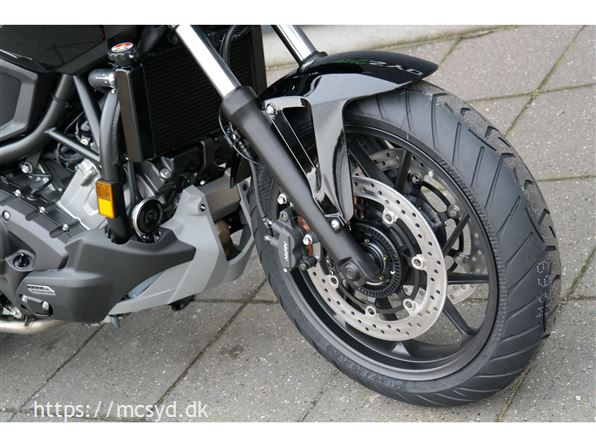Den opdaterede NC750X DCT introducerer et redesignet frontparti med en ny LED-forlygte og skarpere linjer, der understreger dens eventyr-inspirerede stil. Bremserne er forbedret med dobbelte 296 mm skiver foran, hvilket giver øget bremseeffektivitet og kontrol. Derudover tilbyder lette 17-tommer hjul en ny “3by3” egerkonstruktion, der optimerer vægten uden at gå på kompromis med styrken.