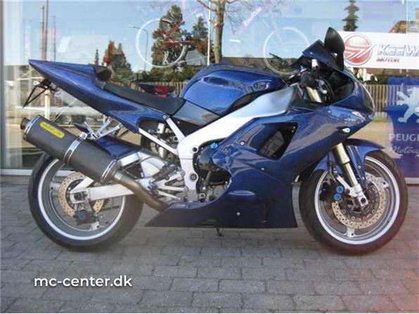 YAMAHA YZF R1 Ccm.: 1000 Farve.: blå Årgang.: 1999 Km.: 44.000 Kan købes for kr. 1521.- pr. mdr. uden udbetaling via finansering. Monteret med BIKETEK tankdæksel, Candy Lakering med airbrush, Arrow potte, blå fodhviler, Rizoma blink og nummerpladeholder.